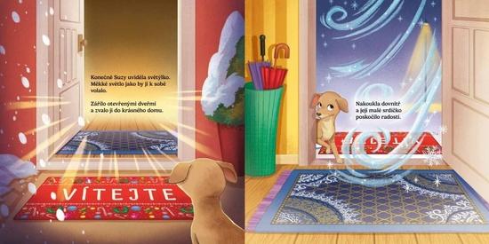 Už chyběly jen dva týdny do Vánoc, když se opuštěný pejsek potuloval sám zimní krajinou, zavátý sněhem a hladový. Vtom fenečka spatřila světýlko, které ji zvalo do pootevřených dveří, kde cítila teplo, vešla dovnitř s nadějí rozechvělým srdíčkem – třeba najde víc než jen úkryt...