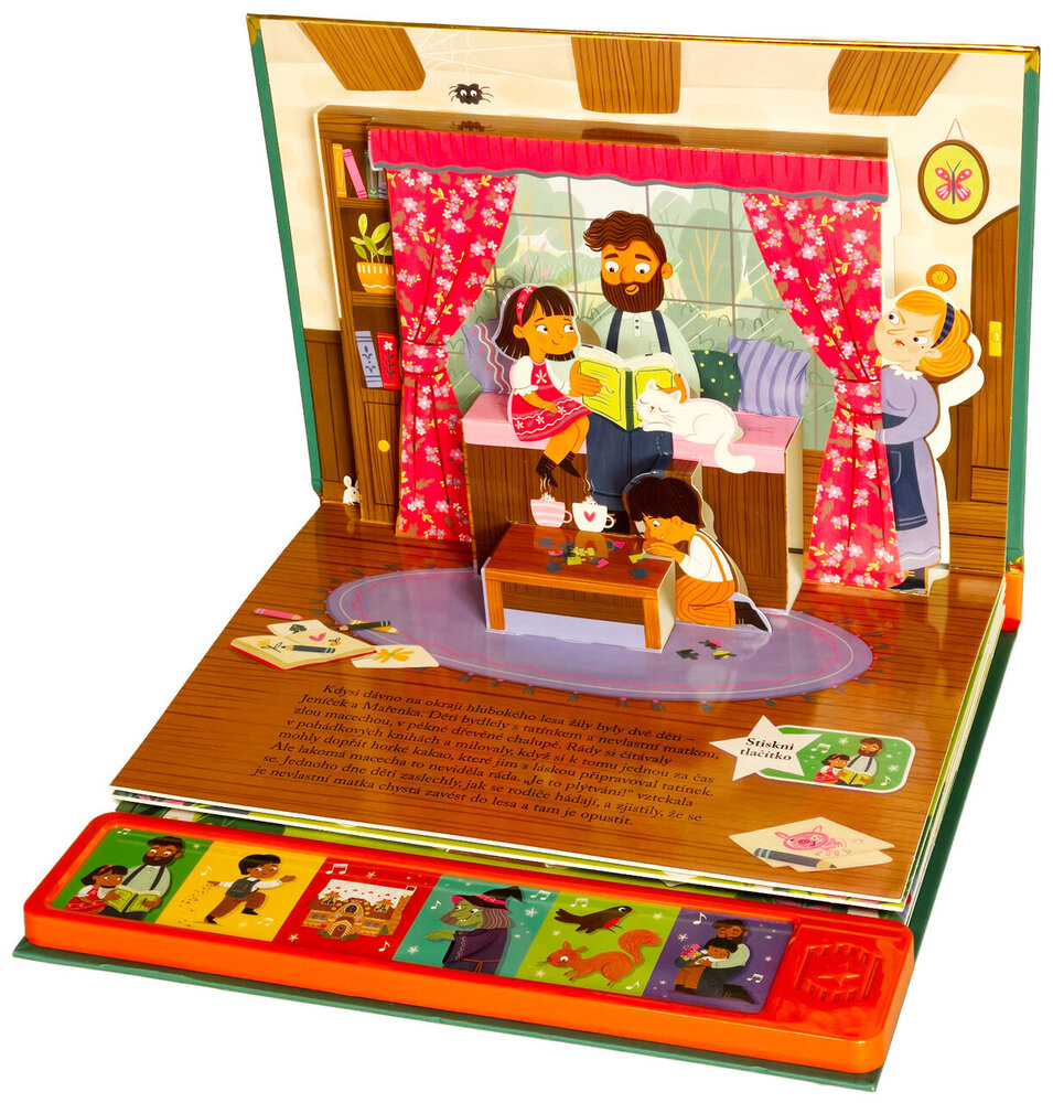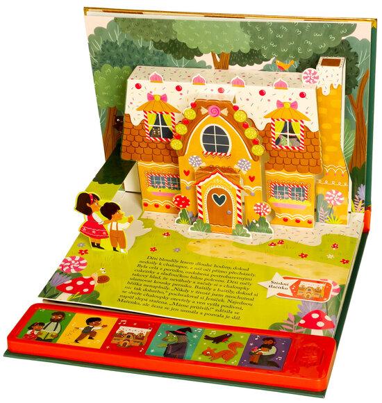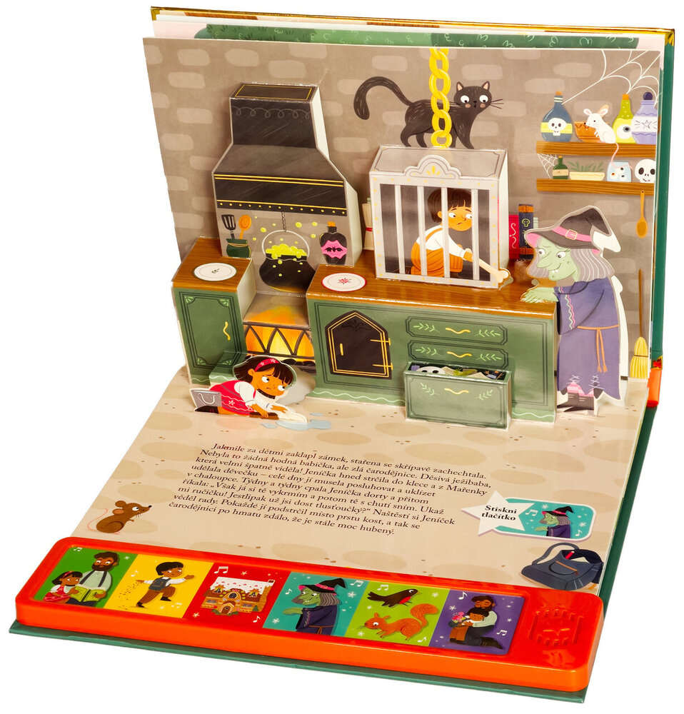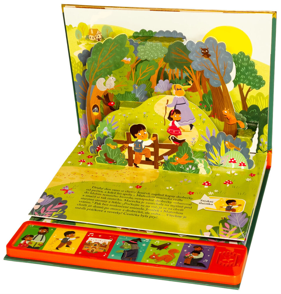 Vdechni život kouzelnému světu pohádek s nádherným prostorovým leporelem se zvuky. Když macecha nechá Jeníčka a Mařenku v hlubokém lese, děti bloudí, až narazí na lákavou chaloupku z perníku. Ale je to opravdu záchrana? V tomto prostorovém leporelu se zvuky ožívá klasická pohádka o odvaze, důvtipu a sourozenecké lásce. Vyprávějte si s dětmi, mačkejte zvuková tlačítka a objevujte stránku za stránkou svět Jeníčka a Mařenky, který se vám doslova vynoří před očima. Díky 3D kulisám a propracovaným ilustracím bude čtení nezapomenutelným zážitkem.