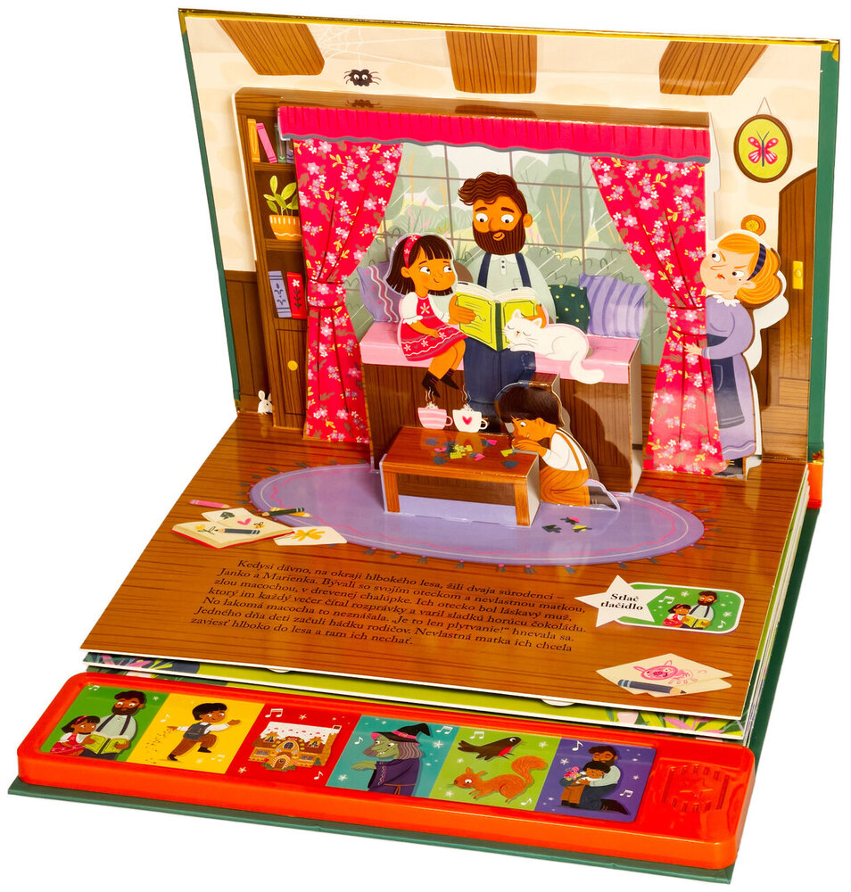 Vdýchni život kúzelnému svetu rozprávok s nádherným priestorovým leporelom so zvukmi. Keď macocha nechá Janka a Marienku v hlbokom lese, deti blúdia, až narazia na lákavú chalúpku z perníka. Ale je to naozaj záchrana? V tomto priestorovom leporele so zvukmi ožíva klasická rozprávka o odvahe, dôvtipe a súrodeneckej láske. Rozprávajte sa s deťmi, stláčajte zvukové tlačidlá a objavujte stránku za stránkou svet Janka a Marienky, ktorý sa vám doslova vynorí pred očami. Vďaka 3D kulisám a prepracovaným ilustráciám bude čítanie nezabudnuteľným zážitkom.
