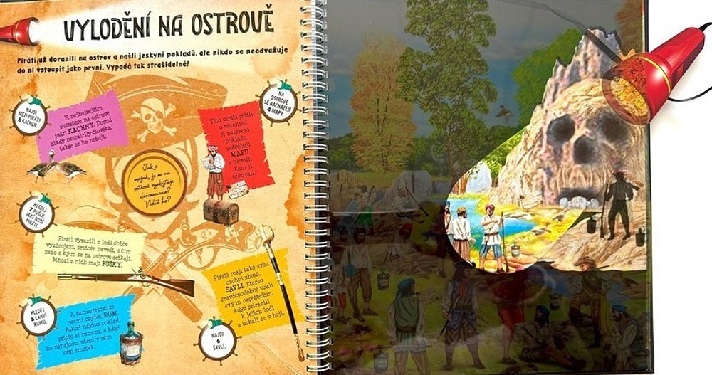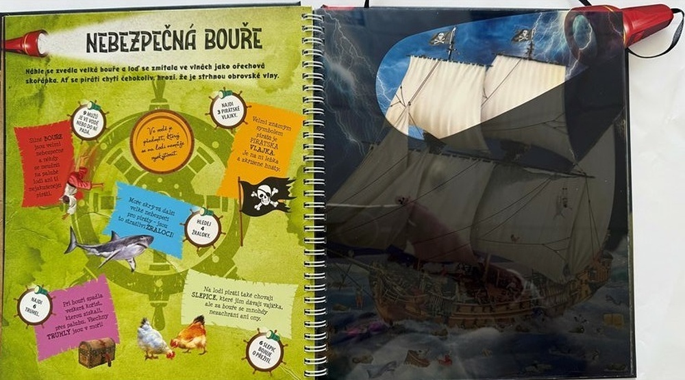 Unikátní vzdělávací a interaktivní kniha, která děti hravou formou provede různými místy ze života pirátů. Série se vyznačuje tím, že postavy, předměty a detaily skryté v knize se stanou viditelnými pouze s pomocí přiložené „baterky“. Takto můžete nejen číst, ale také objevovat, zkoumat, hledat a nacházet – znovu a znovu!