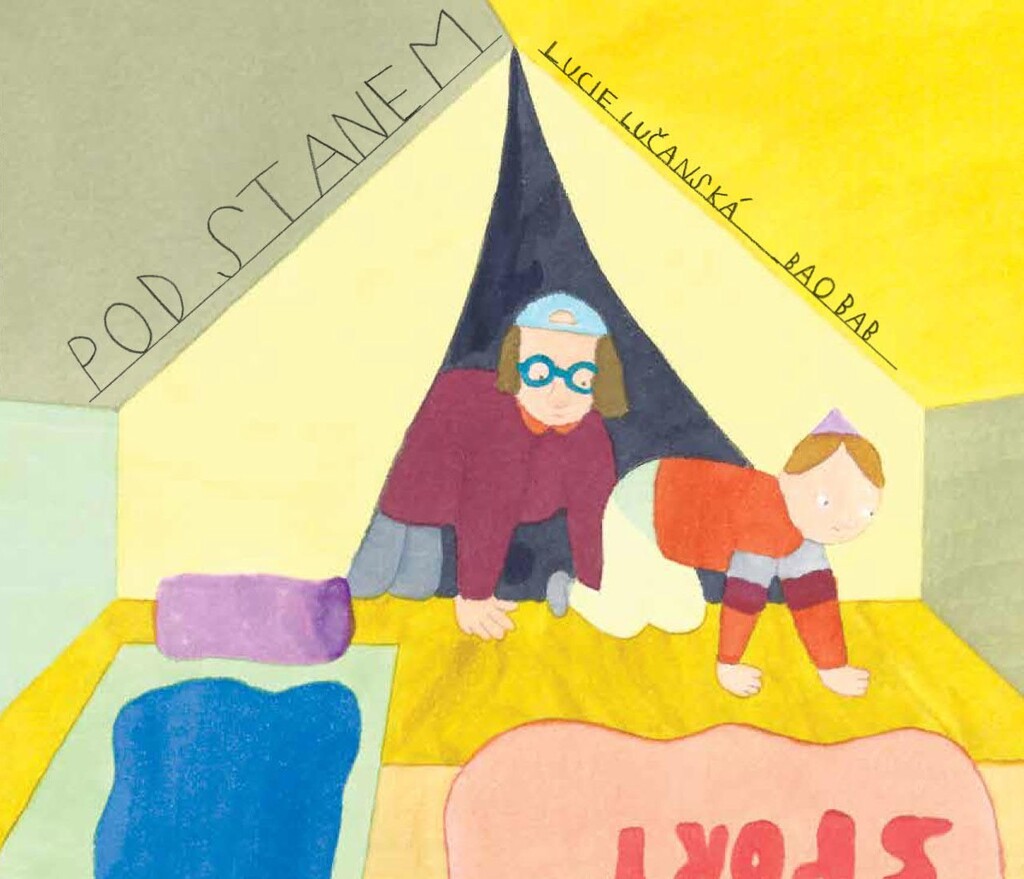 Dva sourozenci vyrážejí za dobrodružstvím. Putují sto dlouhých dní, až přijdou do nové země. Západ slunce je tam nádherný, blíží se ale noc a začíná být zima. Ještě že mají stan. Můžou se zachumlat do spacáků a vyprávět si strašidelné historky. Jenže co to? Něco tam venku šramotí a dupe! Duchové nebo kostlivci? A co když se někomu začne chtít čůrat? Kniha Pod stanem získala mezinárodní cenu Serpa za obrazovou knihu. Lucie Lučanská v ní prostě, hmatatelně, a přitom s jemnou poetikou vypráví o dětských výpravách, hledání samostatnosti, setkání s přírodou… A o tom, jak je skvělé, když vám někdo kryje záda.