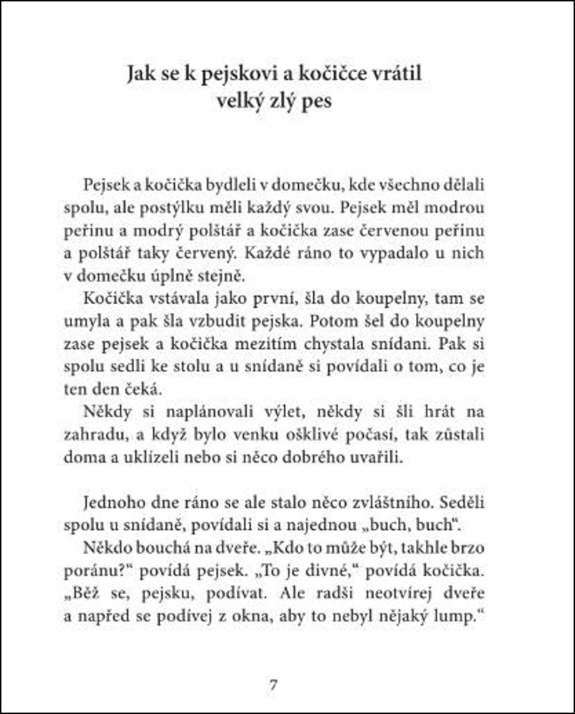 Pejsek a kočička se vracejí v nových pohádkách, které napsal Pavel Fara s velkou úctou k Josefu Čapkovi, inspirován jeho původním dílem Povídání o pejskovi a kočičce. V této knížce se vydávají na veselé výpravy do pohádky o perníkové chaloupce, o Červené Karkulce nebo zažívají přátelské i ...