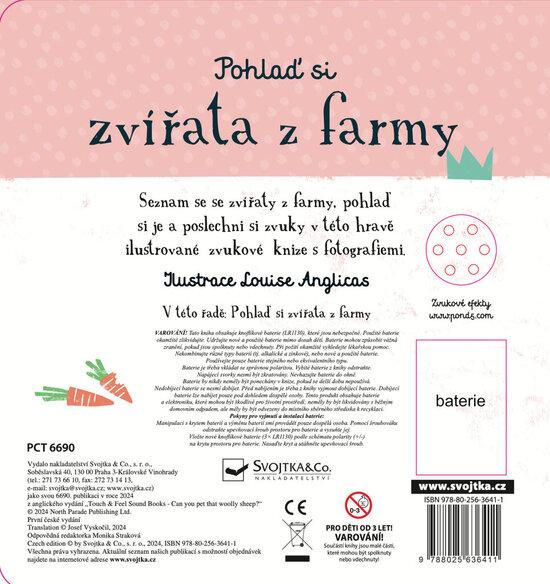 Vítej na farmě a seznam se s jejími obyvateli. Pohlaď si ovci, koně nebo prase a poslechni si zvuky, které vydávají. Dozvíš se o zvířatech z farmy pár zajímavostí a podíváš se, jak žijí. Tato zvuková kniha s hmatovými prvky je ideální pro menší děti, které si s její pomocí procvičují většinu smyslů naráz.