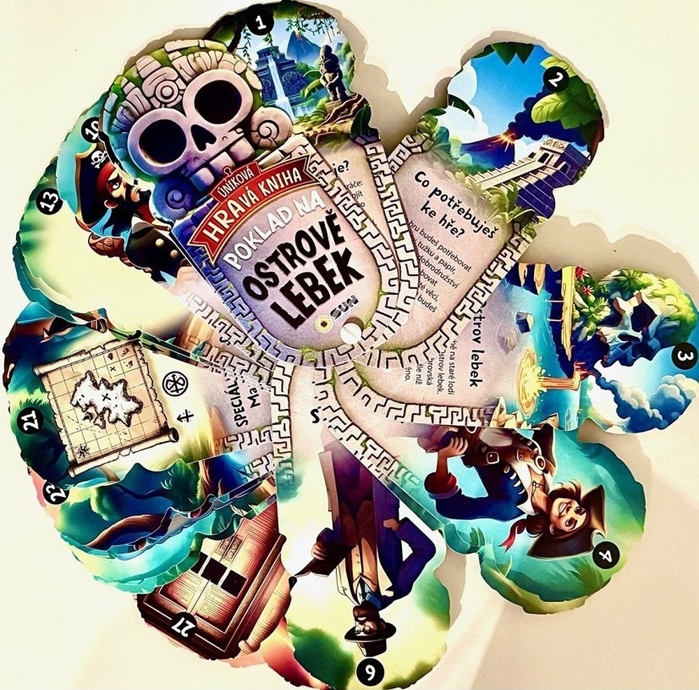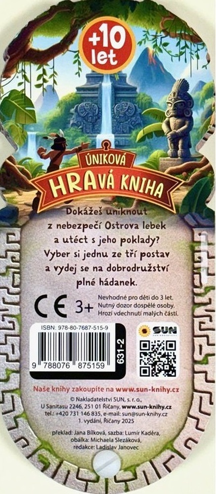 Ostrov Lebek je úžasná, hravá a chytrá úniková hra v knize, která prověří tvoji odvahu, logiku i schopnost správně se rozhodovat. Vyber si jednu ze tří dobrodružných postav, z nichž každá má speciální schopnost, a vydej se na cestu plnou nástrah, pastí a tajemství. Jakmile vstoupíš na ostrov, budeš postupovat podle očíslovaných karet a rozhodnutí, která tě zavedou buď blíž ke komnatě pokladů… nebo k tvému konci.