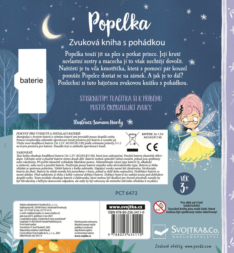 Popelka si nepřeje nic jiného než jít na ples. Ale její macecha a kruté nevlastní sestry ji s sebou vzít nechtějí. Naštěstí má Popelka hodnou vílu kmotřičku, s jejíž kouzelnou pomocí se plesu přece jenom bude moct zúčastnit. V této úchvatně ilustrované zvukové knize děti najdou klasickou a velmi oblíbenou pohádku o Popelce doplněnou nápaditými zvuky. Zapojte děti do četby, mačkejte tlačítka a vyprávějte si spolu tento nesmrtelný příběh znovu a znovu.