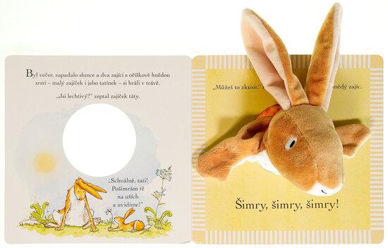 Táta zajíc s oříškově hnědou srstí a jeho malý synek si před spaním hrají na šimranou – a ty se můžeš přidat! Tato roztomilá knížka s maňáskem ti umožní stát se součástí večerního mazlení. Šimrej zajíčka na čumáčku, pod bradičkou i na packách a pomoz mu zjistit, kde ho to nejvíc lechtá. Příběh ...