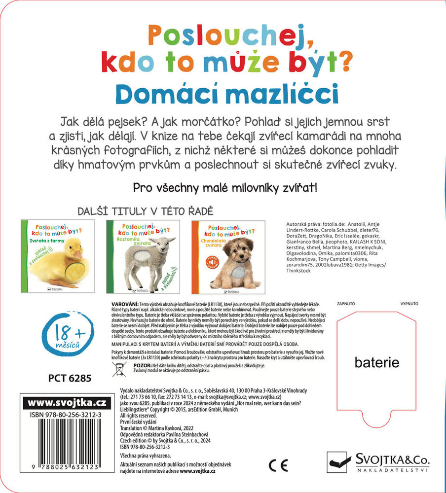 Jak dělá pejsek? A jak morčátko? Pohlaď si jejich jemnou srst a zjisti, jak dělají. V knize na tebe čekají zvířecí kamarádi na mnoha krásných fotografiích, z nichž některé si můžeš dokonce pohladit díky hmatovým prvkům a poslechnout si skutečné zvířecí zvuky.