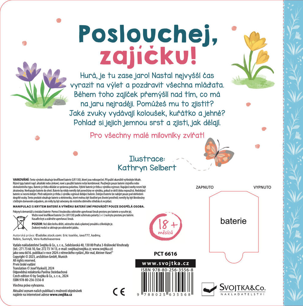Hurá, je tu zase jaro! Nastal nejvyšší čas vyrazit na výlet a pozdravit všechna mláďata. Během toho zajíček přemýšlí nad tím, co má na jaru nejraději. Pomůžeš mu to zjistit? Jaké zvuky vydávají koloušek, kuřátko a jehně? Pohlaď si jejich jemnou srst či peří a zjisti, jak dělají. V knize na tebe čekají zvířecí kamarádi, z nichž některé si můžeš dokonce pohladit díky hmatovým prvkům, a poslechnout si skutečné zvířecí zvuky. Pro všechny malé milovníky zvířat!