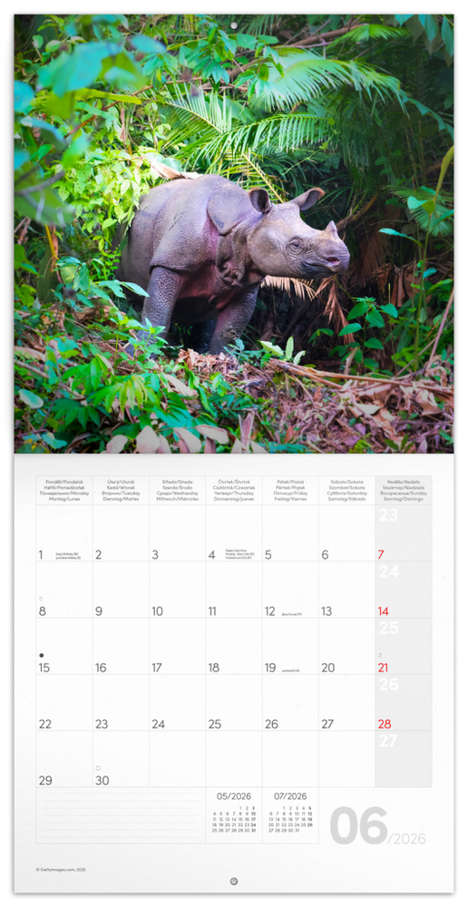 Dvanáct fotografií ohrožených zvířat v praktickém poznámkovém kalendáři. Kalendář obsahuje přehledné kalendárium od září 2025 do prosince 2026 v osmi jazycích, měsíční fáze, důležité svátky a prostor pro poznámky na každý den. Kalendář je součástí kolekce Plastic Free, je zabalený v obálce z recyklovaného papíru a vytištěný na recyklovaném strukturovaném papíře s vysokou gramáží.