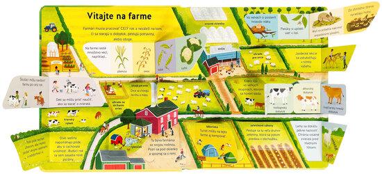 Chceš vedieť, čo sa deje na farme v priebehu celého roku? Od jari do zimy je tu vždy plno práce a zaujímavých vecí na objavovanie! Pripoj sa k farmárskej rodine a nahliadni pod desiatky odklápacích okienok, ktoré ti odhalia skryté tajomstvá farmy. Zistíš, ako sa doja kravy, čo sa deje v kurníku, ako funguje kombajn alebo aké stroje pomáhajú farmárom v zime. Táto interaktívna knižka plná detailných ilustrácií a prekvapení pod okienkami vtiahne malých čitateľov do sveta farmy a ukáže im, odkiaľ pochádza jedlo a ako funguje život na vidieku. Ideálna pre zvedavé deti, ktoré milujú zvieratá a techniku!