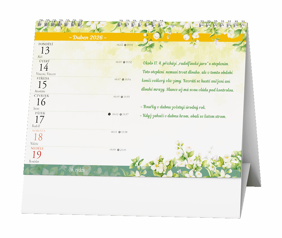 Stolní kalendář s týdenním kalendáriem a pranostikami na každý týden od paní Renaty Raduševy Herber.