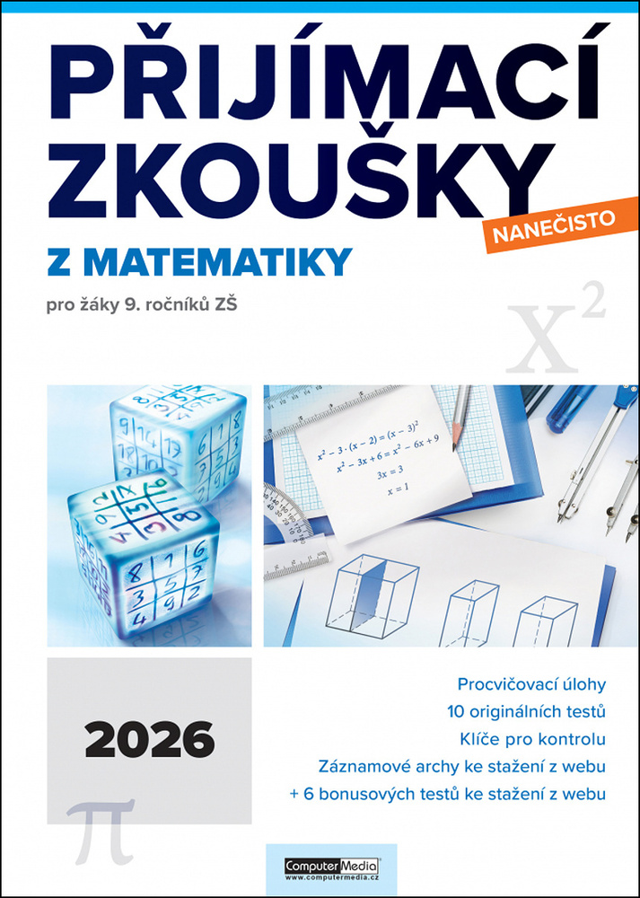 - procvičovací úlohy doplněné o stručné přehledy teorie a rozdělené do tří oblastí podle dokumentu Specifikace požadavků pro jednotnou přijímací zkoušku v přijímacím řízení na střední školy v oborech vzdělávání s maturitní zkouškou,