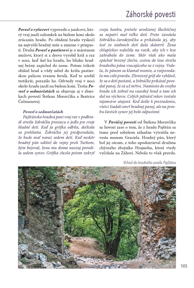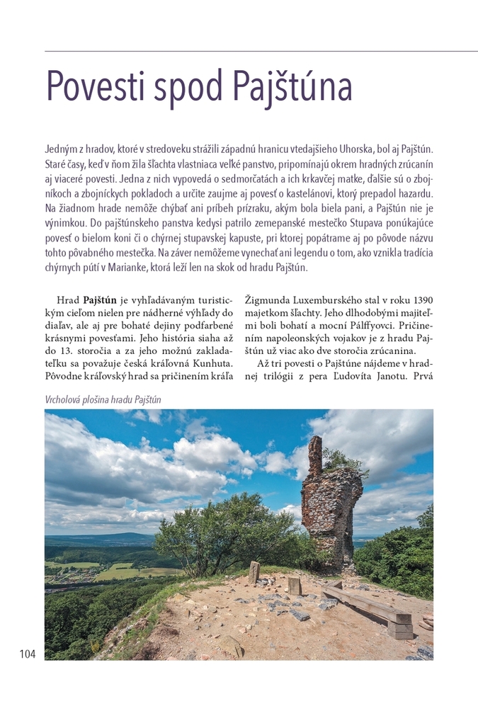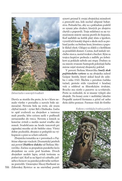 Kniha ponúka stručné a prehľadné spracovanie povestí s odkazmi na literárne zdroje, filmové či divadelné spracovania a fotografie miest, kde sa príbehy odohrali. Kniha je súčasne aj prvým dielom trilógie Slovensko v povestiach, ktorá celkovo prináša prehľad povestí a legiend od Dunaja a Moravy cez dolné Považie až po stredné Slovensko, a umožňuje spoznať slovenské regióny netradičným spôsobom.