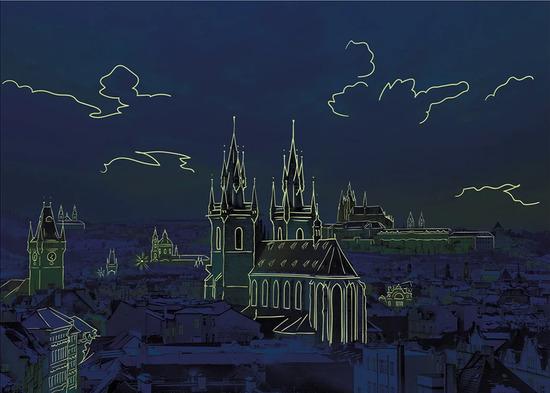 Puzzle 1000 Pohled na Hradčany neon