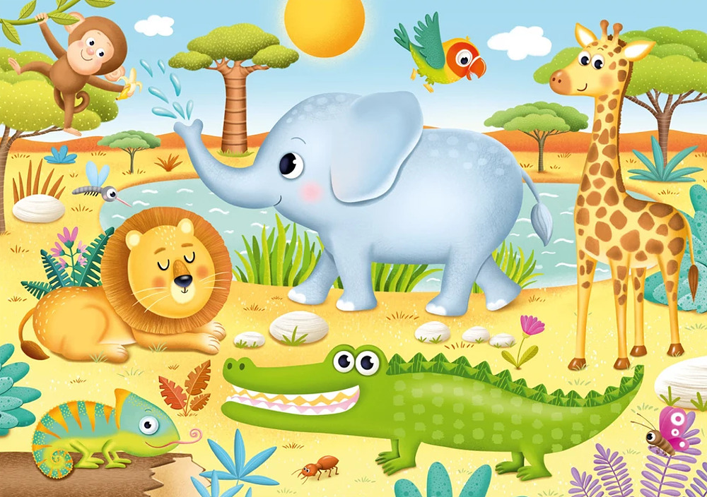 První puzzle pro ty úplně nejmenší - 15 velkých dílků s krásnými ilustracemi zvířátek z Afriky.