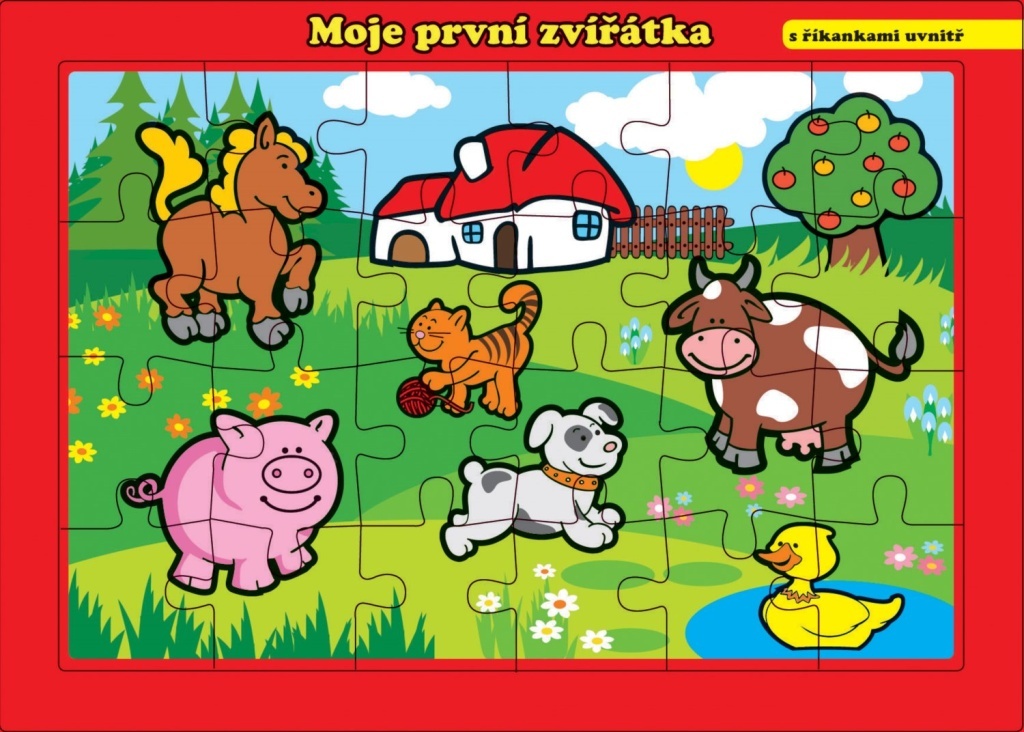 Pod sestaveným obrázkem zvířátek "Moje první zvířátka" najdete říkanky na téma "zvířátka". Rozměr puzzle: 26 x 17 cm, 24 dílků. Vhodné pro děti od 3 let.