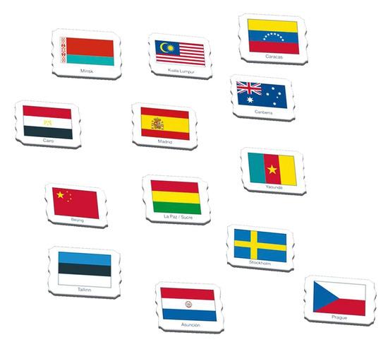 Deskové vzdělávací puzzle zobrazuje vlajky států celého světa. Věk: 4+