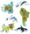 Deskové vzdělávací puzzle zobrazuje jednotlivé kontinenty a pro ně typické zástupce zvířecí říše. Věk: 4+