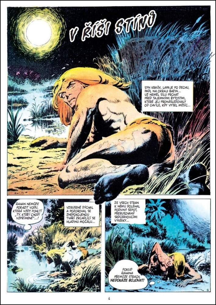Devátá kniha Rahanových dobrodružství představí temné příběhy: V říši stínů; Zabiják mamutů; Kmen od prokletého jezera.