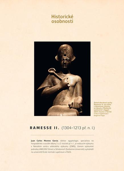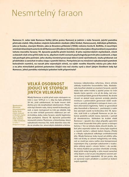 V příloze věnované společensko-historickému kontextu se dozvíte mnoho zajímavých informací, které vám pomohou doplnit portrét Ramesse II. Můžete si též prohlédnout fotografie jeho staveb, nástěnné malby a vyobrazení z chrámu v Abú Simbelu či mapu zachycující starověké říše na Blízkém východě.