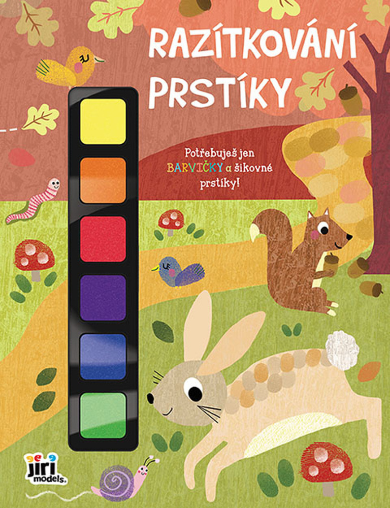Razítkování prstíky obsahuje 32 stránek plných veselých obrázků k dorazítkování a 6 prstových barev.