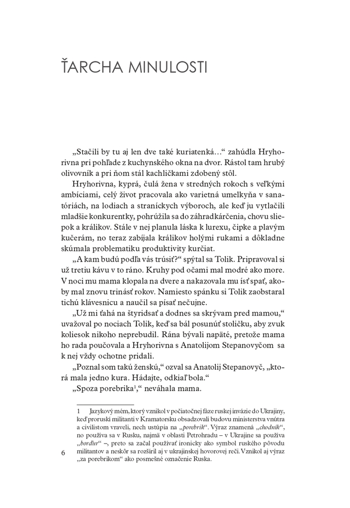 Citlivý a zároveň ironický pohľad na ukrajinskú rodinu, ktorú vojna vytrhla z domova, no nie z koreňov.