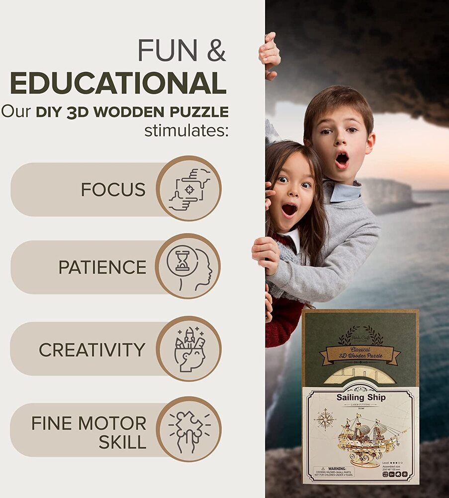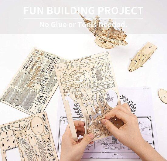 Robotime dřevěné 3D puzzle Vojenská plachetnice TG305 118 ks