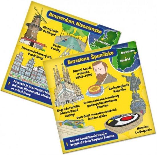 Hra je ve tvaru krychle a obsahuje 70 karet s obrázky měst a vždy 8 otázkami.