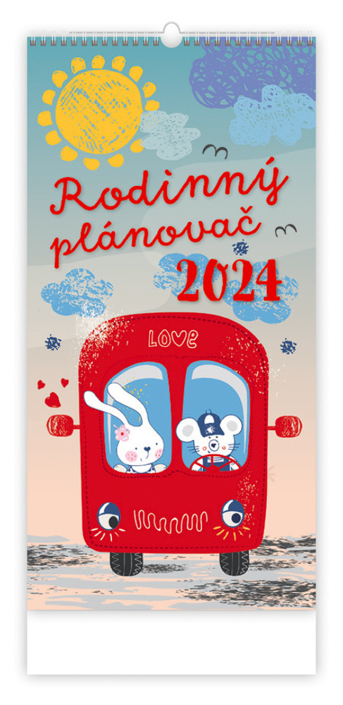 Formát kalendáře: 31,5 x 63 cm </br> Kalendárium: české měsíční jmenné </br> Rozsah kalendáře: 14 listů </br> Vazba: Twin-wire (se spirálou) </br> + políčko pro každého z rodiny