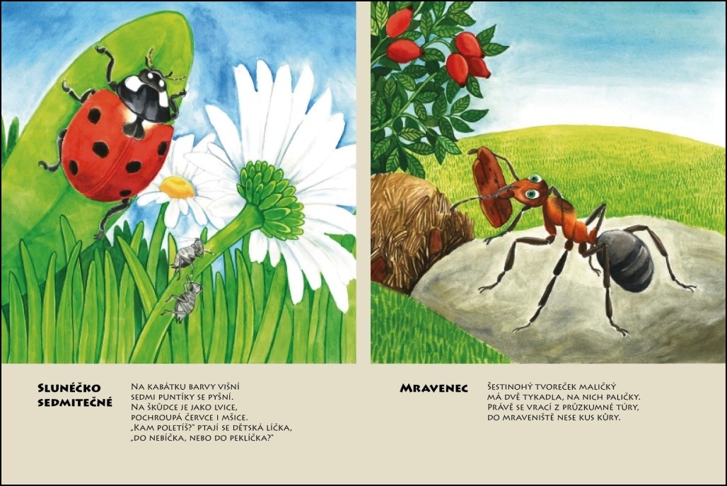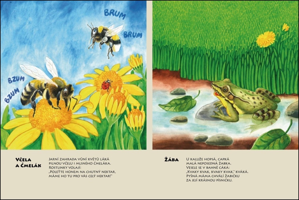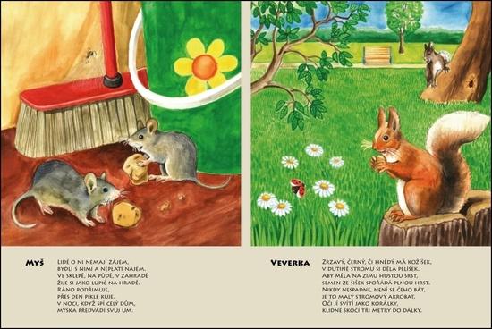 Leporelo obsahuje říkanky s 15 zvířátky ze zahrady.