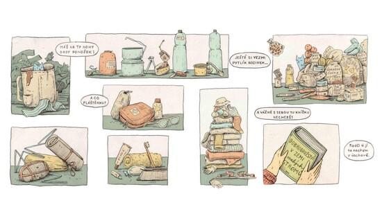 Hlavní hrdinka se vydává na dobrodružnou cestu, je mladá, energická, odhodlaná, zatímco její babička zůstává doma s kočkou a svými vzpomínkami. Prostřednictvím pohlednic, které vnučka posílá, se babička doslova noří do nádherných krajin a stává se součástí vnuččina putování. Navštěvuje pastvinu plnou ovcí, zahradu s největšími lekníny nebo sirné prameny. Autorka v knize na pomezí komiksu a ilustrace ukazuje, jak hluboký a naplňující může být vztah mezi lidmi z odlišných generací.