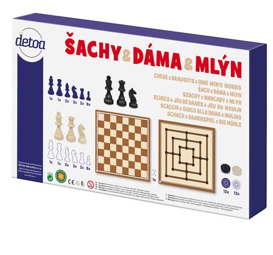 Set obsahuje tři oblíbené deskové hry: šachy, dáma, mlýn. Vyberte si hru podle nálady a zažeňte nudu. Zábava pro každou věkovou skupinu.