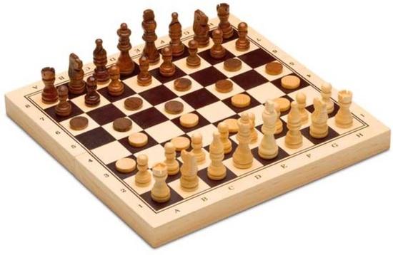 Objevte zábavu a strategii s touto všestrannou sadou 3 v 1, která zahrnuje šachy, dámu a vrhcáby. Vyrobená z kvalitního dřeva, tato
