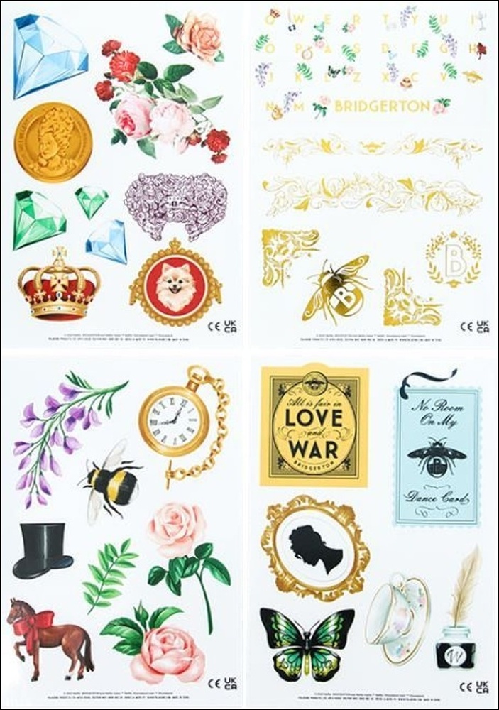 Sada samolepek s licenčním motivem seriálu Bridgetonovi. Obsahuje 4 archy samolepek.