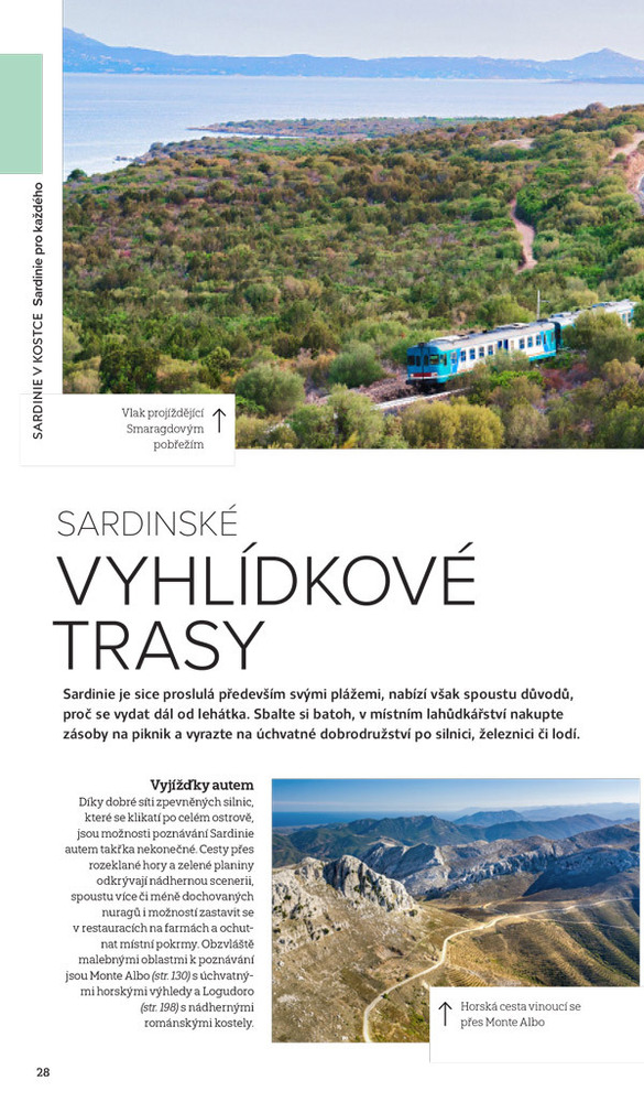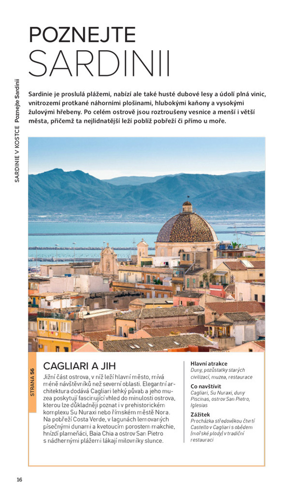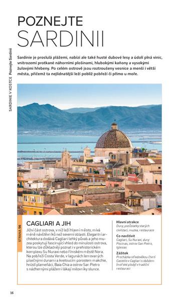 Nádherné pláže a tyrkysové moře, působivé kaňony i jeskyně, památky dávnověkých Nuragů, ale také překrásné románské kostely s freskami, středověká města i vynikající gastronomie – tím vším se může tento malebný středomořský ostrov chlubit. Ať už vás k cestě láká cokoliv, tento průvodce vám bude skvělým společníkem. Podrobné popisy, poutavé fotografie, prostorové kresby památek, praktické mapy i řada tipů vám pomůže k sestavení perfektního itineráře, pokud se vám zrovna nebudou hodit ty, které nabízí náš průvodce.