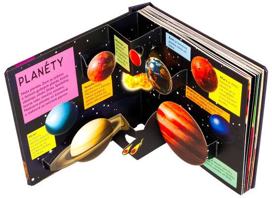 Koľko planét obieha okolo Slnka? Z čoho má Saturn svoje prstence? Vieš, že Slnko je viac ako miliónkrát väčšie než Zem? Vstúp do tejto krásne ilustrovanej knihy s množstvom priestorových pop-up obrázkov a nájdeš odpovede na tieto otázky a dozvieš sa aj mnoho ďalšieho! Kniha je určená pre najmenšie deti, ktoré sa vďaka nej zoznámia s našou Slnečnou sústavou, planétami, Slnkom, Mesiacom, preskúmajú aj vesmír a spoznajú zázračnú planétu Zem. Pre malé deti sú pop-up obrázky ideálne, pretože do nich môžu doslova vstúpiť a všetko si lepšie a názorne predstaviť. Toto interaktívne a hravé spracovanie vo vašich deťoch iste vzbudí záujem a udrží pozornosť na dlhé hodiny.