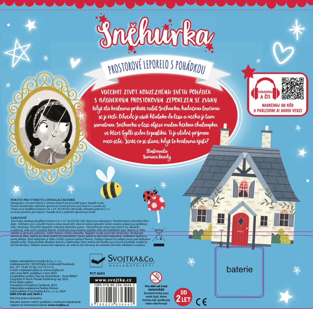 Vdechni život kouzelnému světu pohádek s nádherným prostorovým leporelem se zvuky. Když zlá královna přikáže zabít Sněhurku, hodnému lovčímu se jí zželí. Odvede ji však hluboko do lesa a nechá ji tam samotnou. Sněhurka v lese objeví malou hezkou chaloupku, ve které bydlí sedm trpaslíků. Ti ji vlídně přijmou mezi sebe. Jenže co se stane, když to královna zjistí? V úchvatném prostorovém leporelu se zvuky najdete klasickou a dětmi oblíbenou pohádku o Sněhurce. Zapojte do četby také děti, poslouchejte a vyprávějte si příběh společně. Díky detailnímu provedení na jednotlivých stránkách vystoupí do prostoru postavy z příběhu i kulisy, které dodají pohádce tu správnou kouzelnou atmosféru.