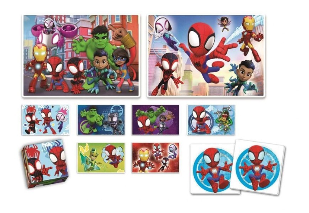 Zábavná sada 4 her ve společnosti oblíbených hrdinů z pohádkové série Marvel Spidey.