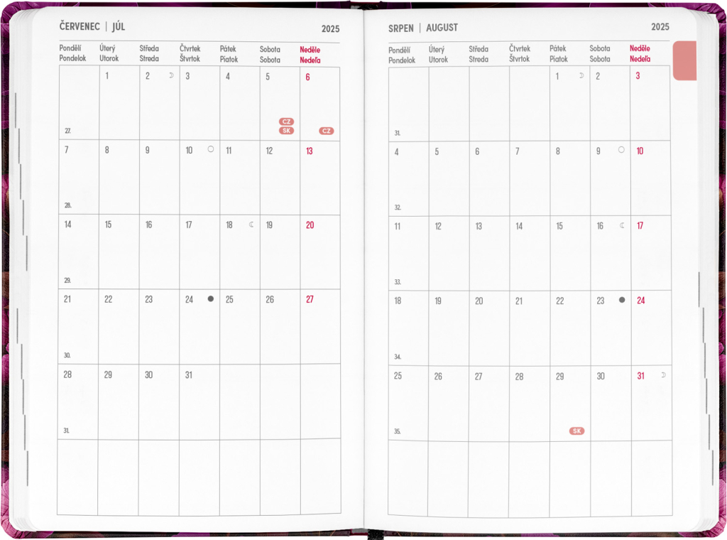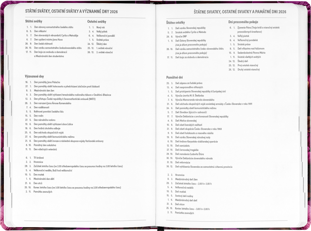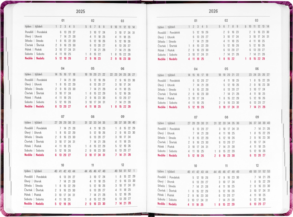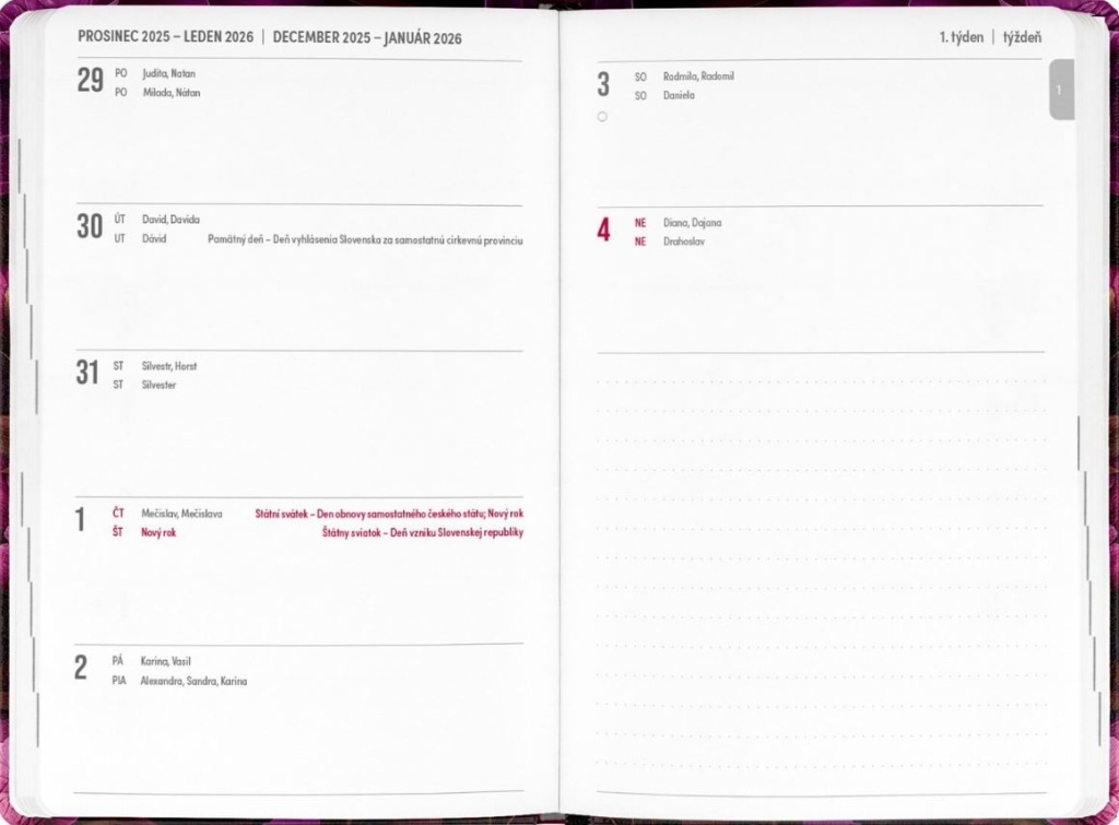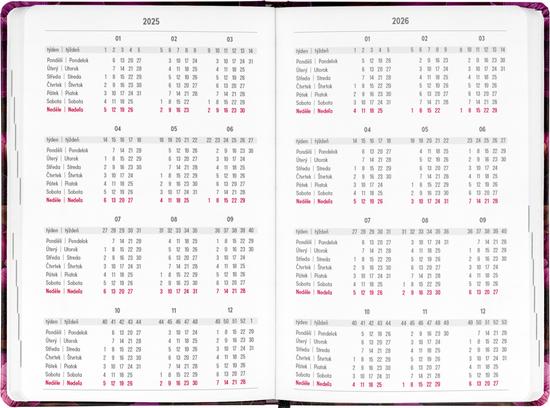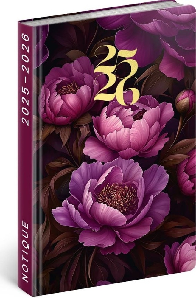 Spirálový 18měsíční diář Petito Fialové květy 2025/2026