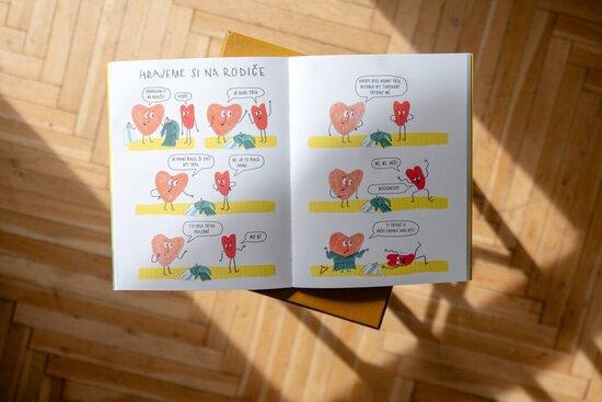 Zářivě barevná komiksová knížka lotyšské autorské dvojice Agnese Vanagové a Anny Vaivareové o dvou srdíčkách, která i přes odlišné povahy spojuje přátelství, obsahuje pětadvacet mikropříběhů a hodí se pro společné rodinné předčítání i první samostatné čtení.