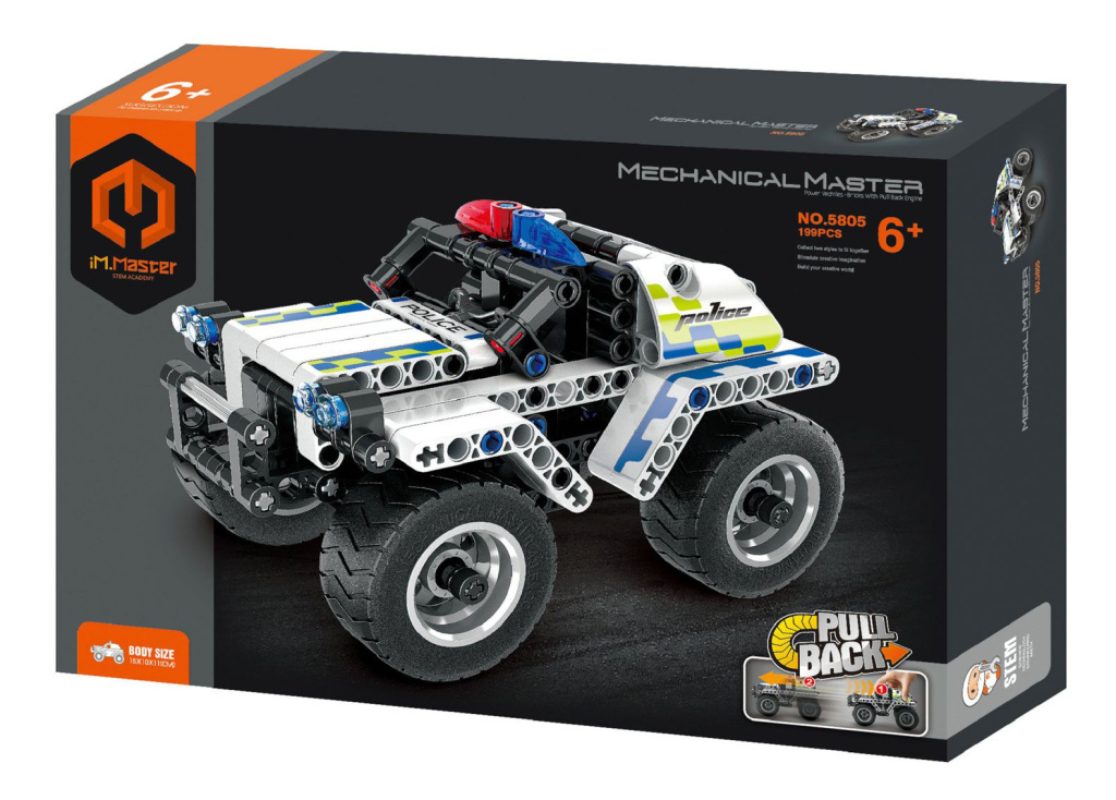 Objevte nekonečnou zábavu se stavebnicí iM.Master! Tento set obsahuje 199 plastových dílků, ze kterých můžete postavit policejní auto a nebo cokoli, co Vaše fantazie vymyslí. Ideální pro děti, které milují stavění a tvoření. Rozměr balení: 29 x 20 x 6 cm Vhodné pro děti od 6 let.
