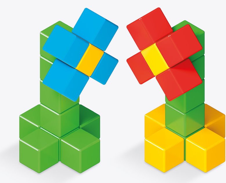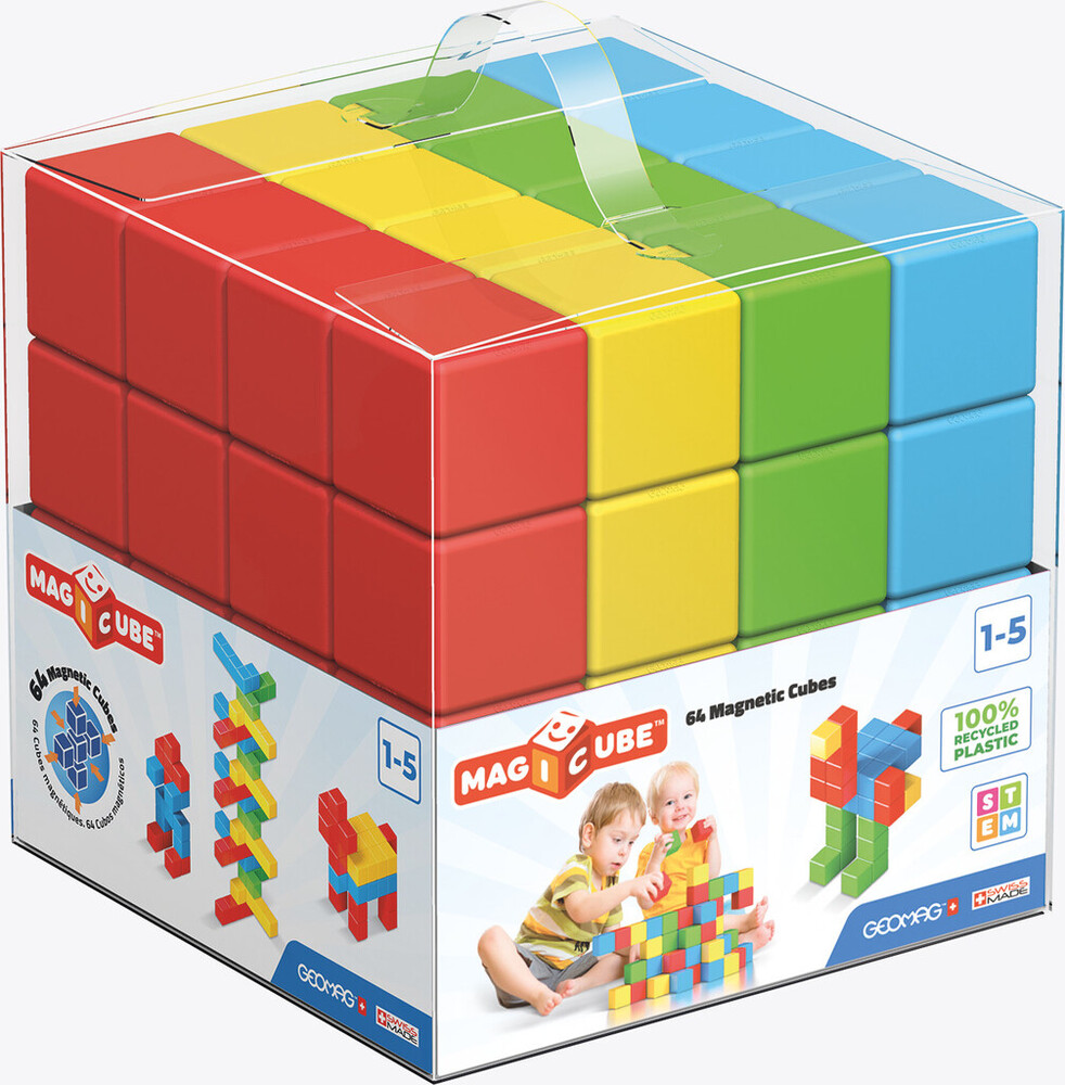Magnetické kostky Geomag Magicube pro stavění objektů dle vlastní fantazie. Jsou skvělým doplňkem mnoha dětských her, kdy poslouží jako stáje pro koníky, ohrádky pro zvířata nebo třeba budovy, tunely a mosty k vláčkodráze.