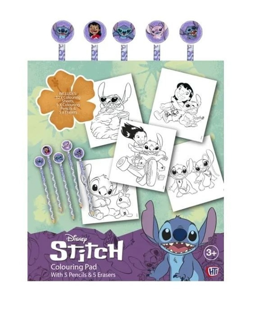 Sada obsahuje 32 omalovánek se Stitchem. Sada obsahuje 6 pastelek a 6 gum.