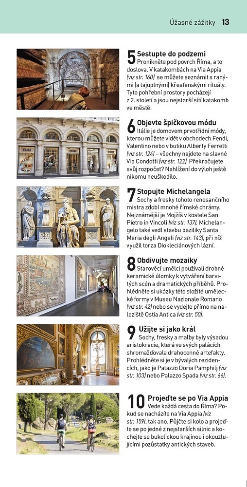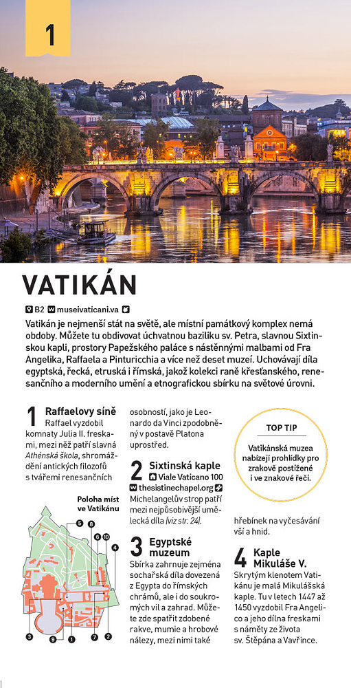 Ať už přijedete na víkend, nebo na týden, najdete v našem průvodci Top 10 to nejlepší, co může Řím nabídnout – od velkolepých památek, jako je Sixtinská kaple a Koloseum, přes náměstíčka a výhledy, na něž nikdy nezapomenete. Nasměruje vás k nádherným dílům od Michelangela a Caravaggia, která jsou ukrytá v chrámech, ale zavede vás také na nejlepší místa, kde se podává pizza al taglio a vydatná římská kuchyně.