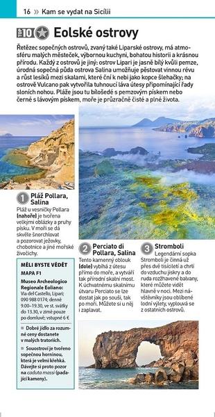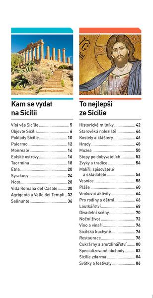 Inspirujte se a zavítejte k hlavním památkám, muzeím, do romantických městeček, na pláže, objevte víno, sicilskou kuchyni, zmrzliny a festivaly. Průvodce vás také vezme do legendárního Palerma...