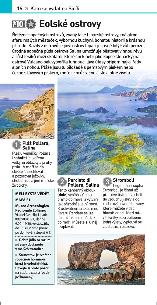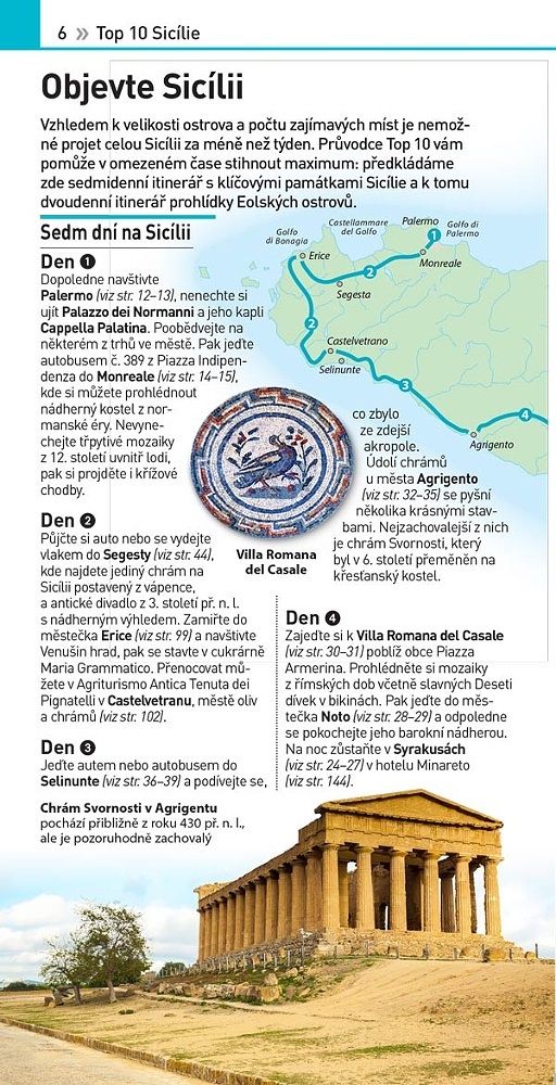 Průvodce po Sicílii z edice TOP 10 přináší perfektní tipy pro každého. Najdete zde to nejlepší ze všeho, co ostrov nabízí, různorodé tipy, co podniknout, včetně nápadů, jak ušetřit, jak se vyhnout davům nebo kam zajít za romantikou.