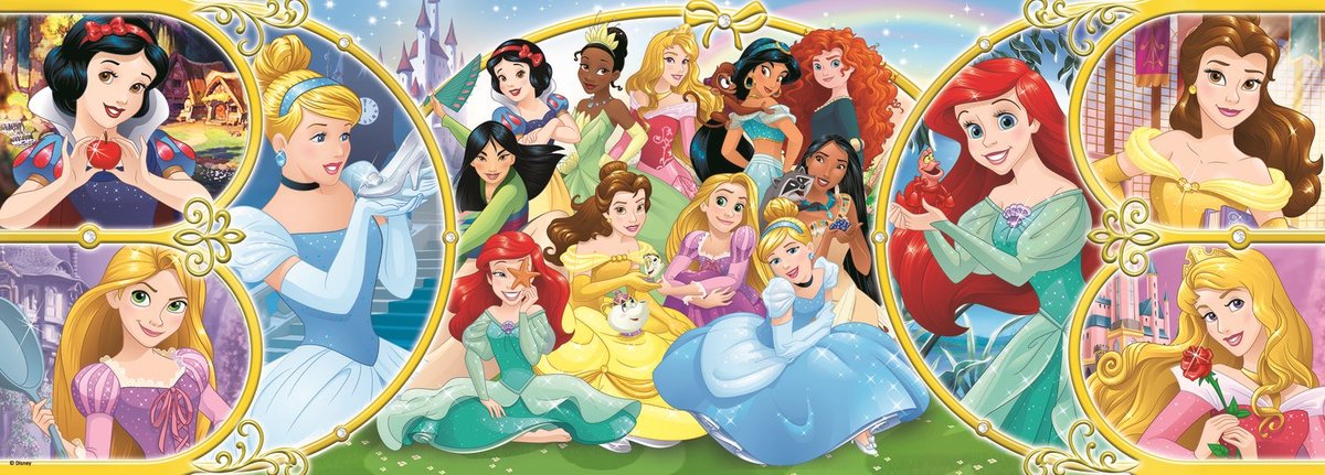 Dětské puzzle s obrázkem disney princezen, obsahuje 500 dílků. Rozměr složeného obrázků 66x23,7 cm. Nevhodné pro děti do 3 let.
