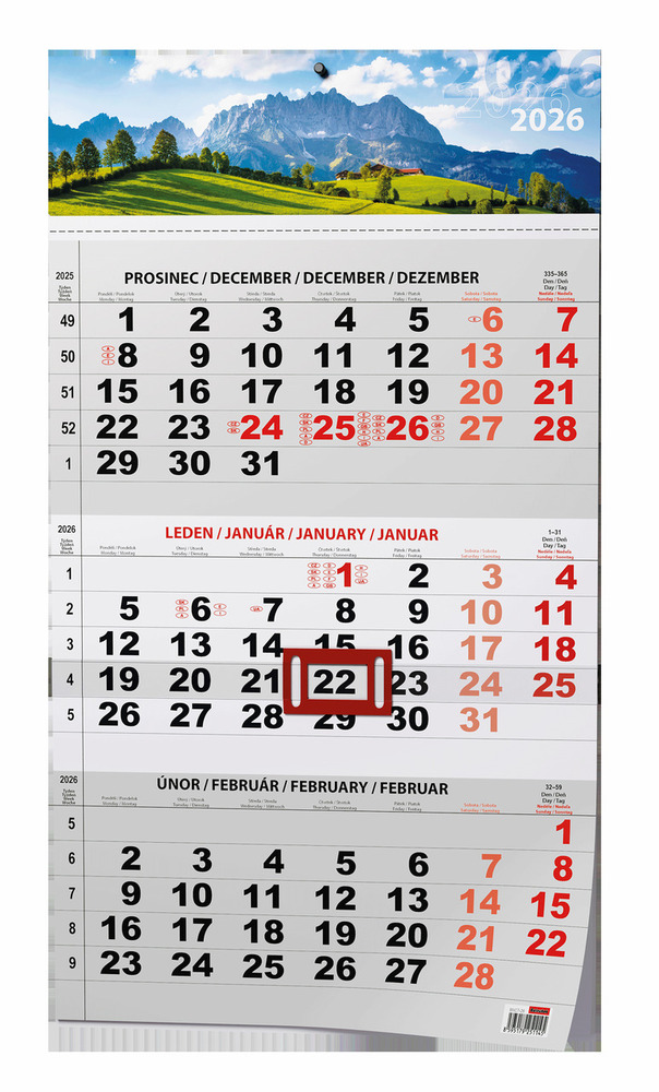 Tříměsíční kalendář 2026 Příroda - nástěnný kalendář