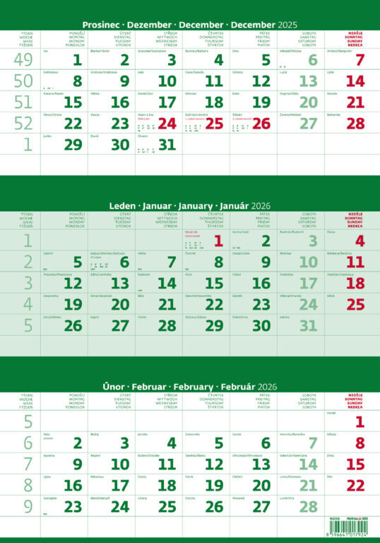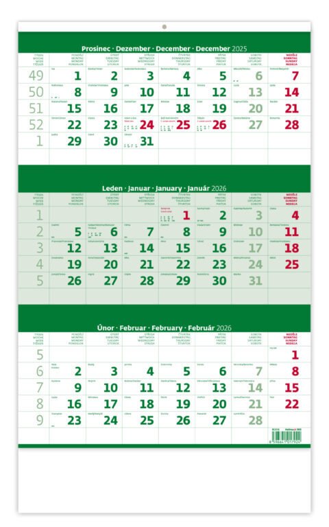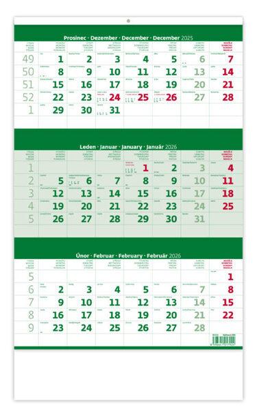 Tříměsíční kalendář zelený 2026 - nástěnný kalendář