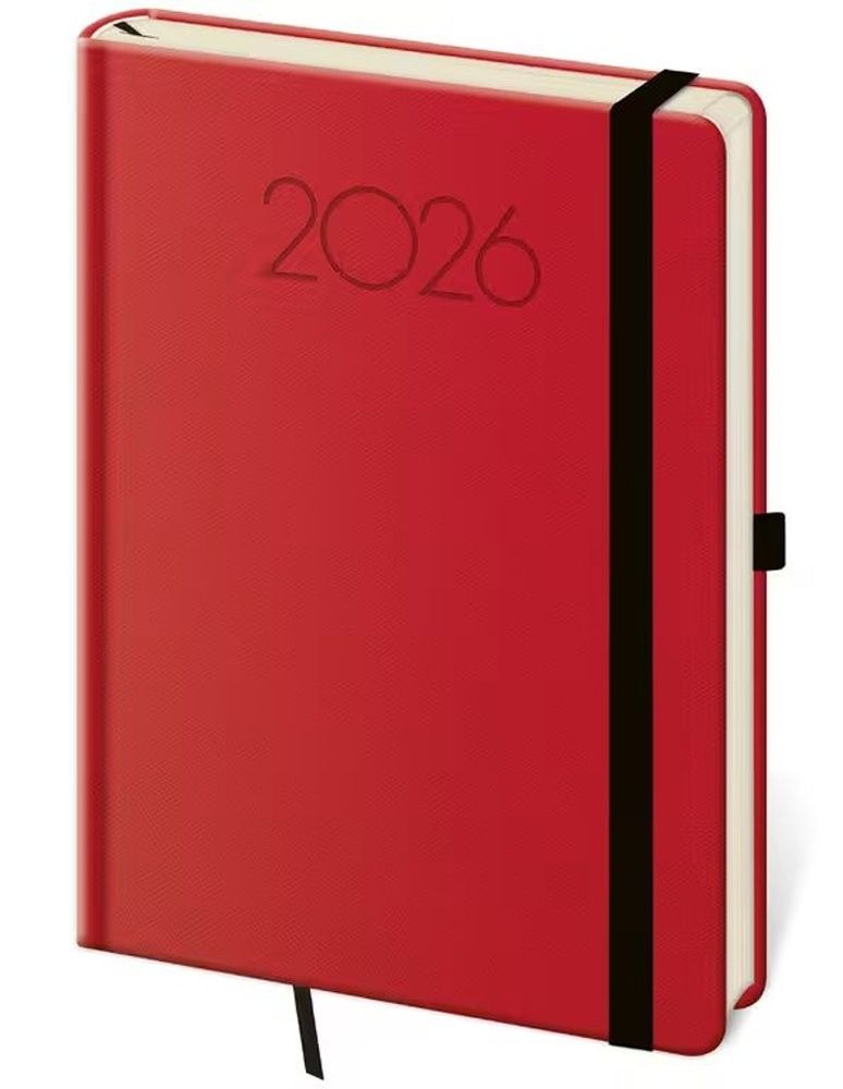 Týdenní diář 2026 A5 New Praga červený s gumičkou